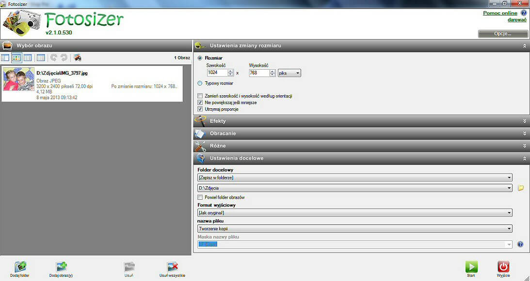Zalecenie: Najlepiej przed rozpoczęciem konwersji naszych zdjęć skopiować sobie do odrębnego folderu kilka zdjęć i na nich poćwiczyć konwersje, zobaczyć efekty różnych opcji, gdyż jak wspominałem wyżej, poprzez nieumiejętną obsługę, można zmienić nieodwracalnie oryginały naszych zdjęć.